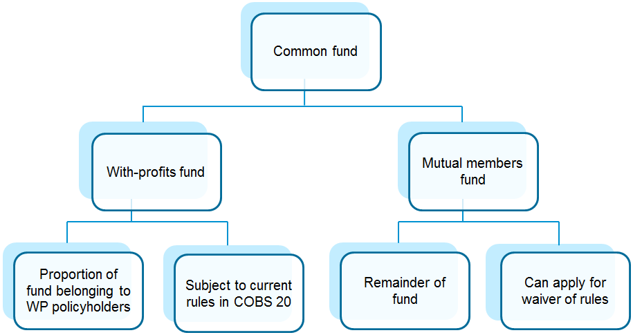 The overall aim of the consultation was to respond to the market’s wishes and to provide mutuals with flexibility. The proposal would allow mutuals to continue writing new without profits business even when the with-profits business has entered run-off by recognising both types of business in a single fund as follows: