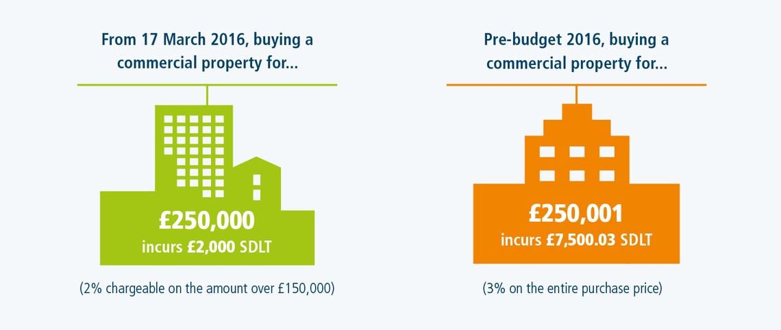 In sharp contrast to the significant increases in Stamp Duty Land Tax (SDLT) for additional and buy-to-let properties that were announced by the Chancellor in the 2015 autumn statement,  Budget 2016 unveiled improvements in the way that SDLT would be charged on commercial property purchases, which took effect from 17 March 2016.
