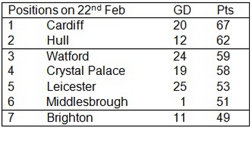 Here is the top seven at 22nd February, when we ran our model. To see how we think the table will look at the end of the season check out our article.