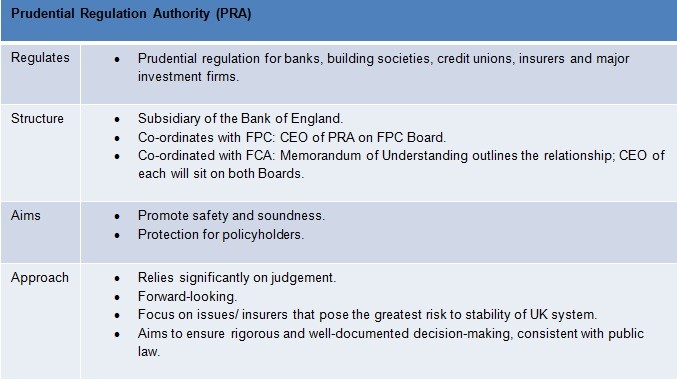 Turning to the PRA, there are understandable concerns from some in the industry that the change has been motivated almost entirely by the banking crisis. That insurance companies will now be regulated by a subsidiary of the Bank of England is a consequence of this. It remains to be seen how much influence the Bank of England will have on the PRA in relation to insurance company regulation. However there is nervousness that those who are ultimately in charge of regulation are not experts in insurance. It is important that that the Bank of England recognises that banks and insurance companies are exposed to different risks; the most obvious example being that liquidity is a significant risk for banks but that is rarely the case for an insurance company.