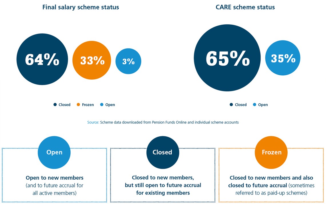 The majority of employers have taken steps to contain the growth of their future pension liabilities, according to our analysis, with only 3% of large final salary schemes remaining open to new members.