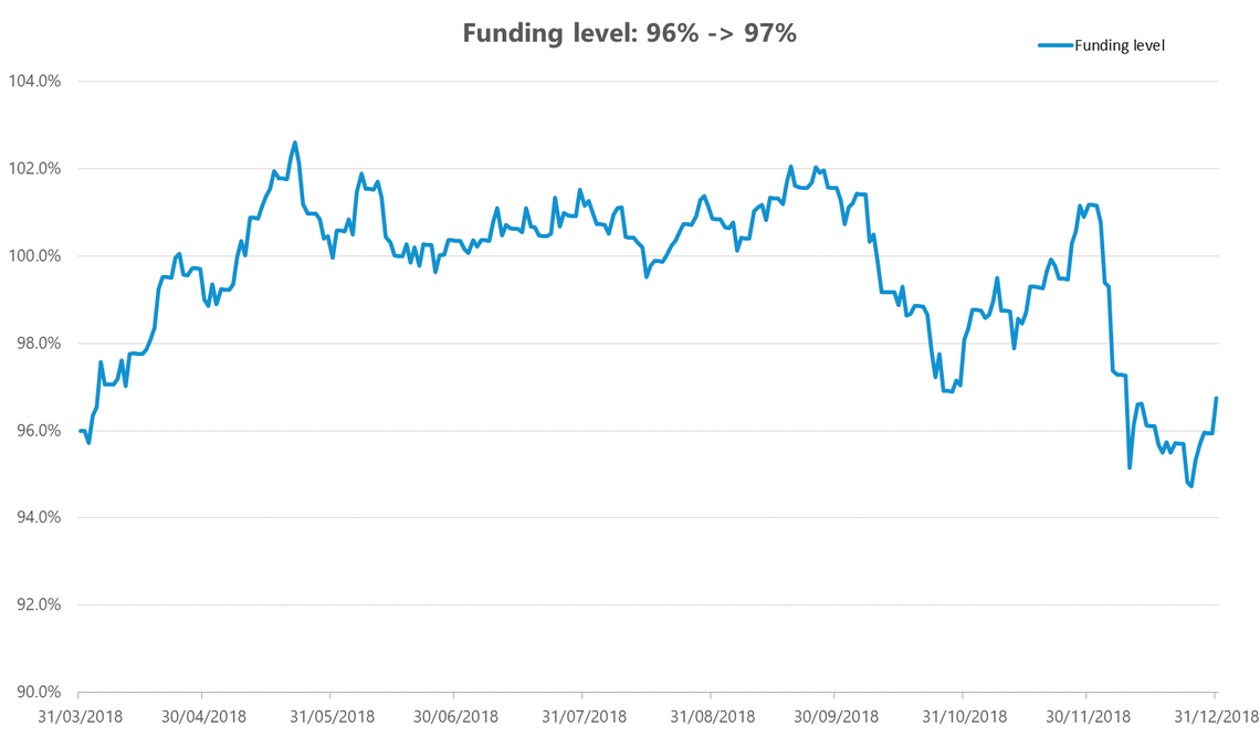 Looking ahead to the 31 March 2019 year-end, most companies reporting at that date are currently looking at a broadly unchanged IAS19 funding position. The average funding level disclosed by FTSE100 companies in our most recent survey was 96%, and for a typical scheme this is likely to stay around the same level based on market movement to 31 December 2018.