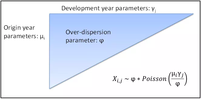 We start with a well-established stochastic model for the claims triangle. Incremental payments in each cell are assumed to follow an Over Dispersed Poisson (ODP) distribution, the mean of which depends on the origin year (row) and development year (column). The column element of the parameters used is analogous to the development factors in the traditional chain ladder model, and the row element allows for different claim volumes in different underwriting years. A dispersion parameter, constant for the whole triangle, is used to adjust the variance of the claim distributions.