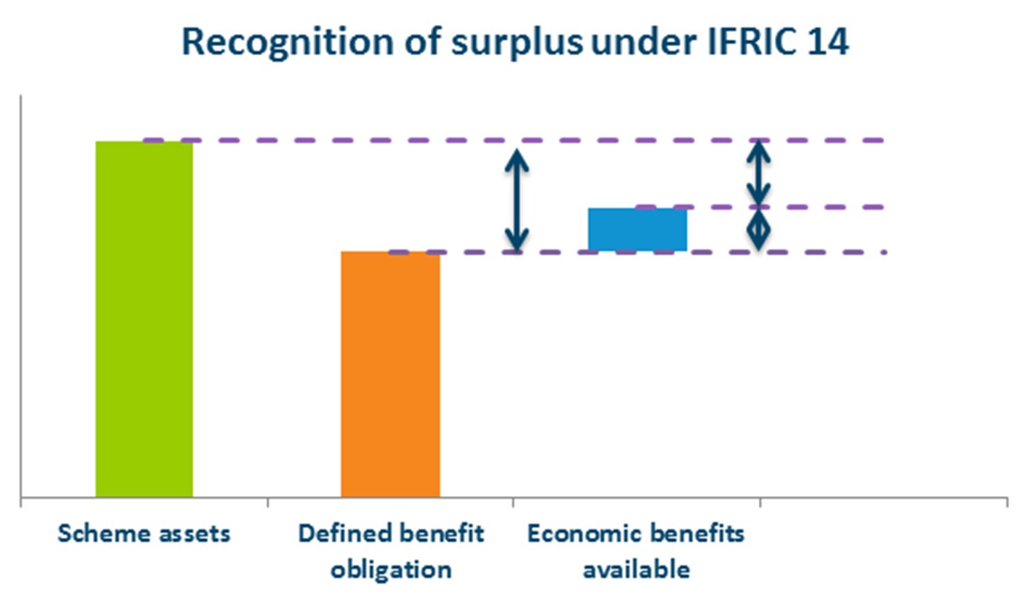 Currently, in order to be able to recognise a surplus under IFRIC14, there must be an economic benefit available to the company – a reduction in contributions in the case of a scheme open to future accrual, and/or the company has an unconditional right to a refund of the surplus at some point in the future.