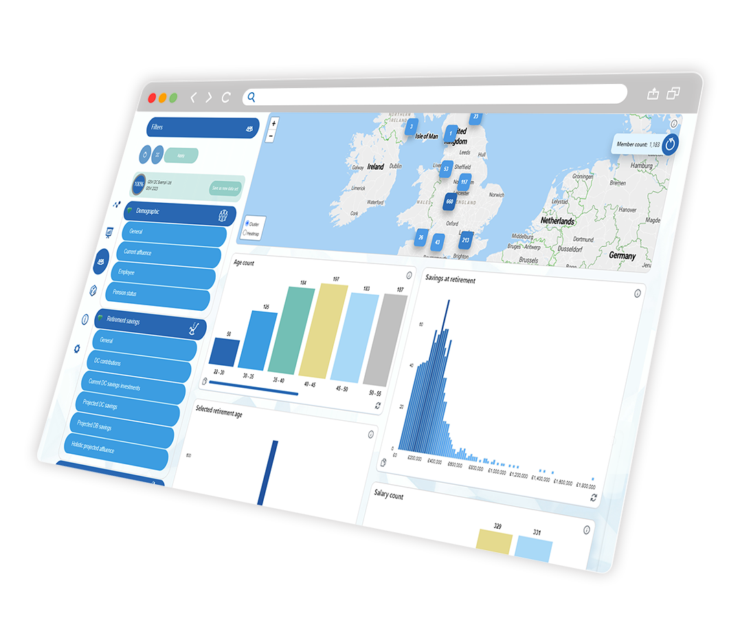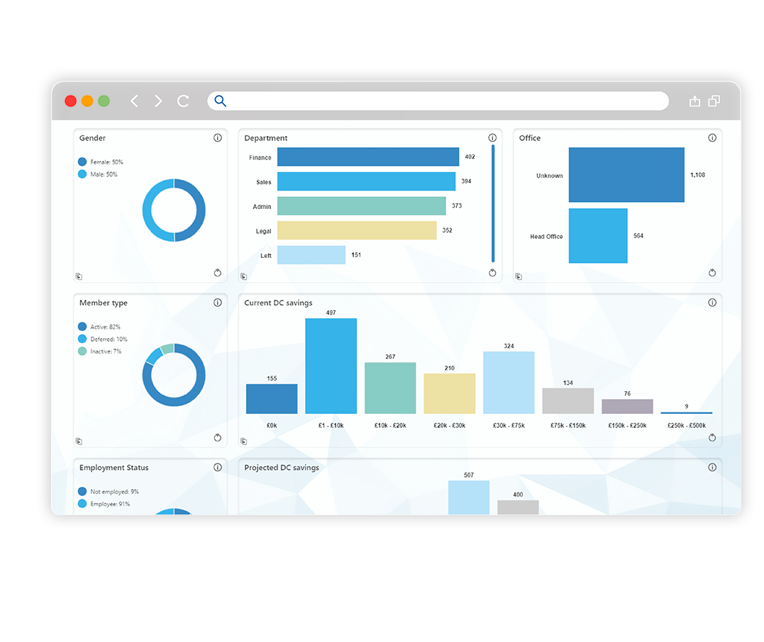 We configure your GEM dashboards and modules with your objectives in mind. You can therefore gain insight that accurately reflects and forecasts the true profile of your DC pension scheme.